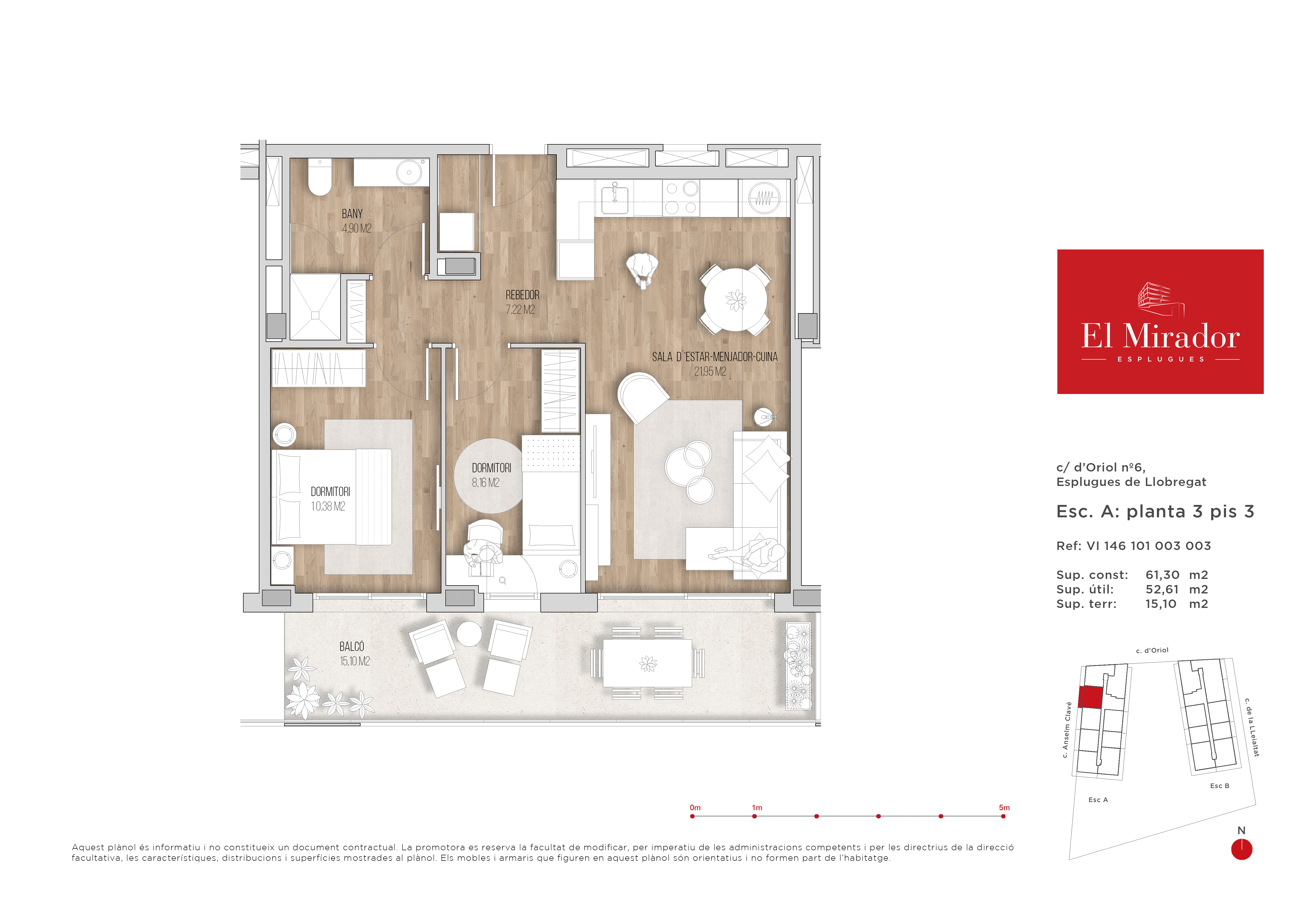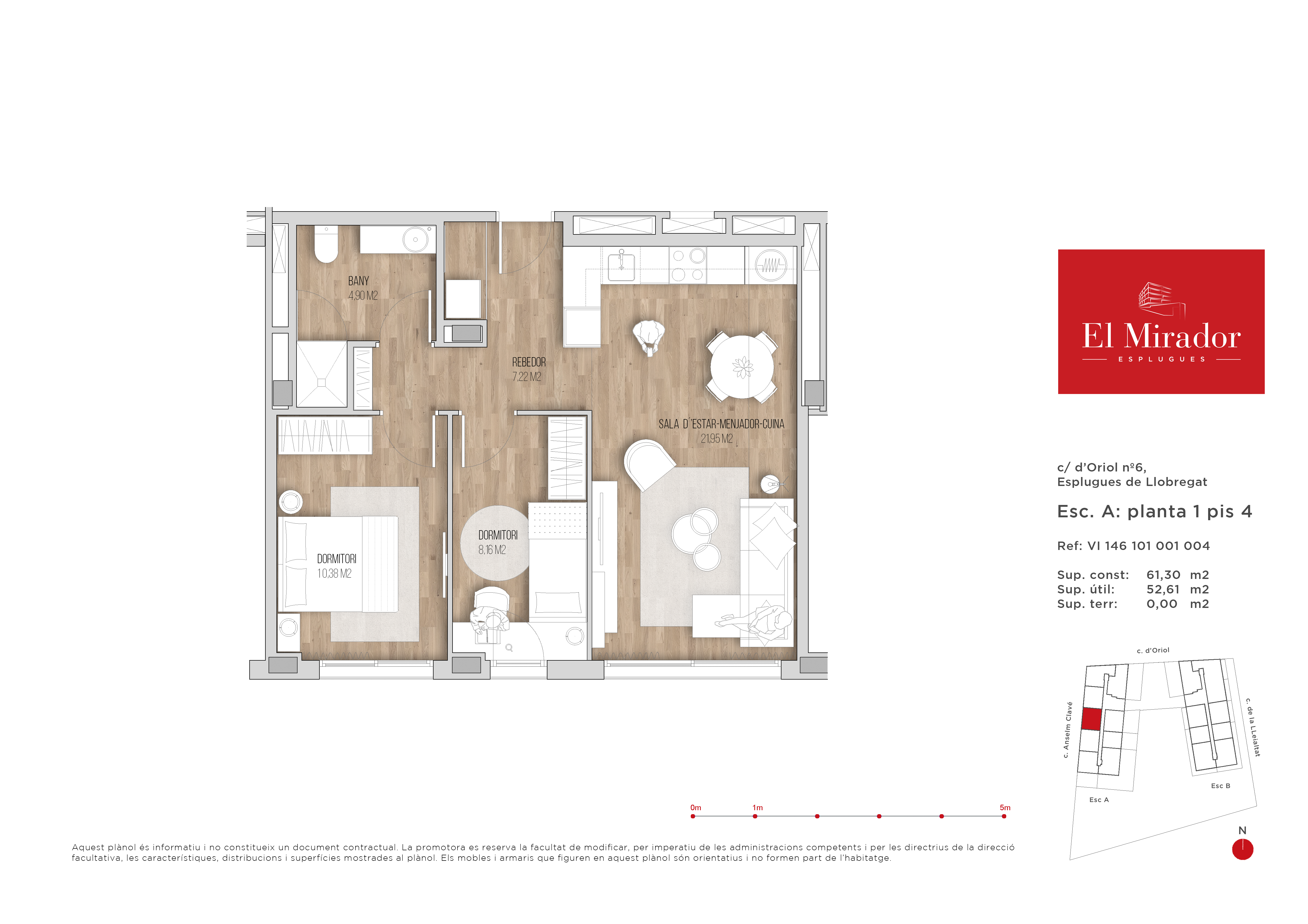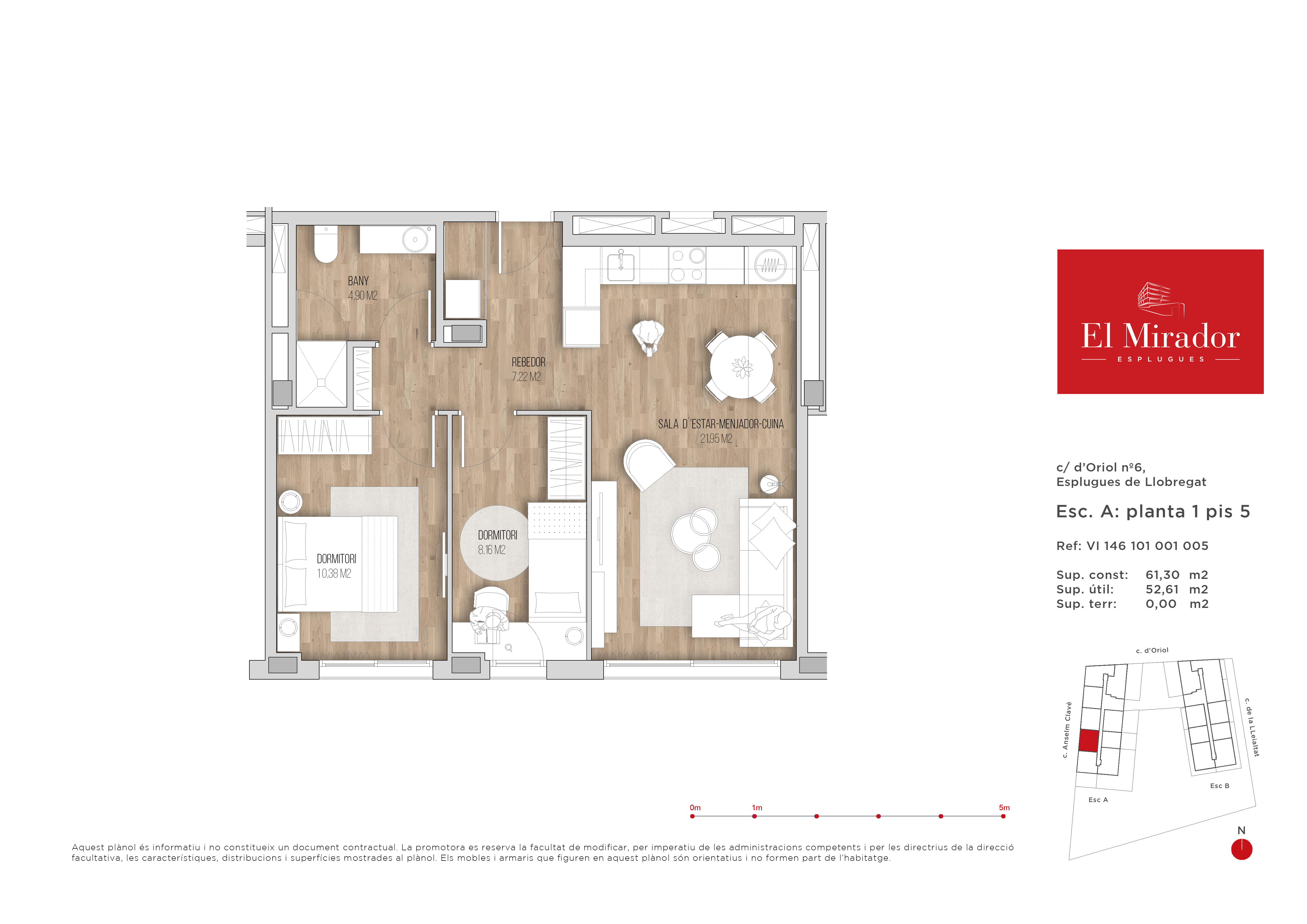 - Pis: 1-5 Util VPC: 52,61 Habitacions + Banys + Balcons: 2 Habitacions + 1 Bany Renda HPO: 526,63 € IBI: 21,92 Residus + Amb: 8,43 Quota Comunitaria: 70,49 Lloguer mensual inicial: 627,47 Serveis Complementaris: 351,12 Total rebut inicial: 978,59 Plànol: Veure plànol