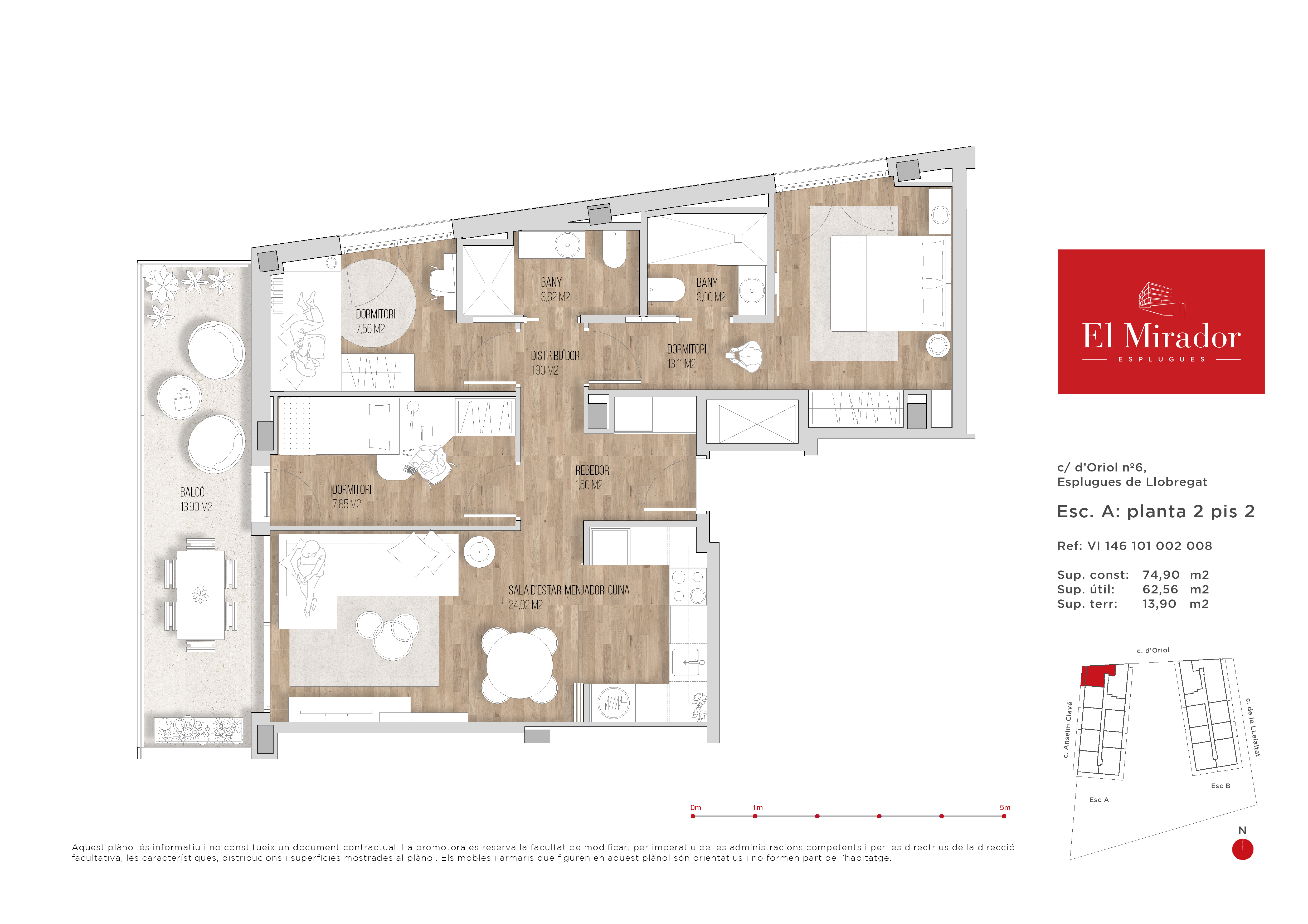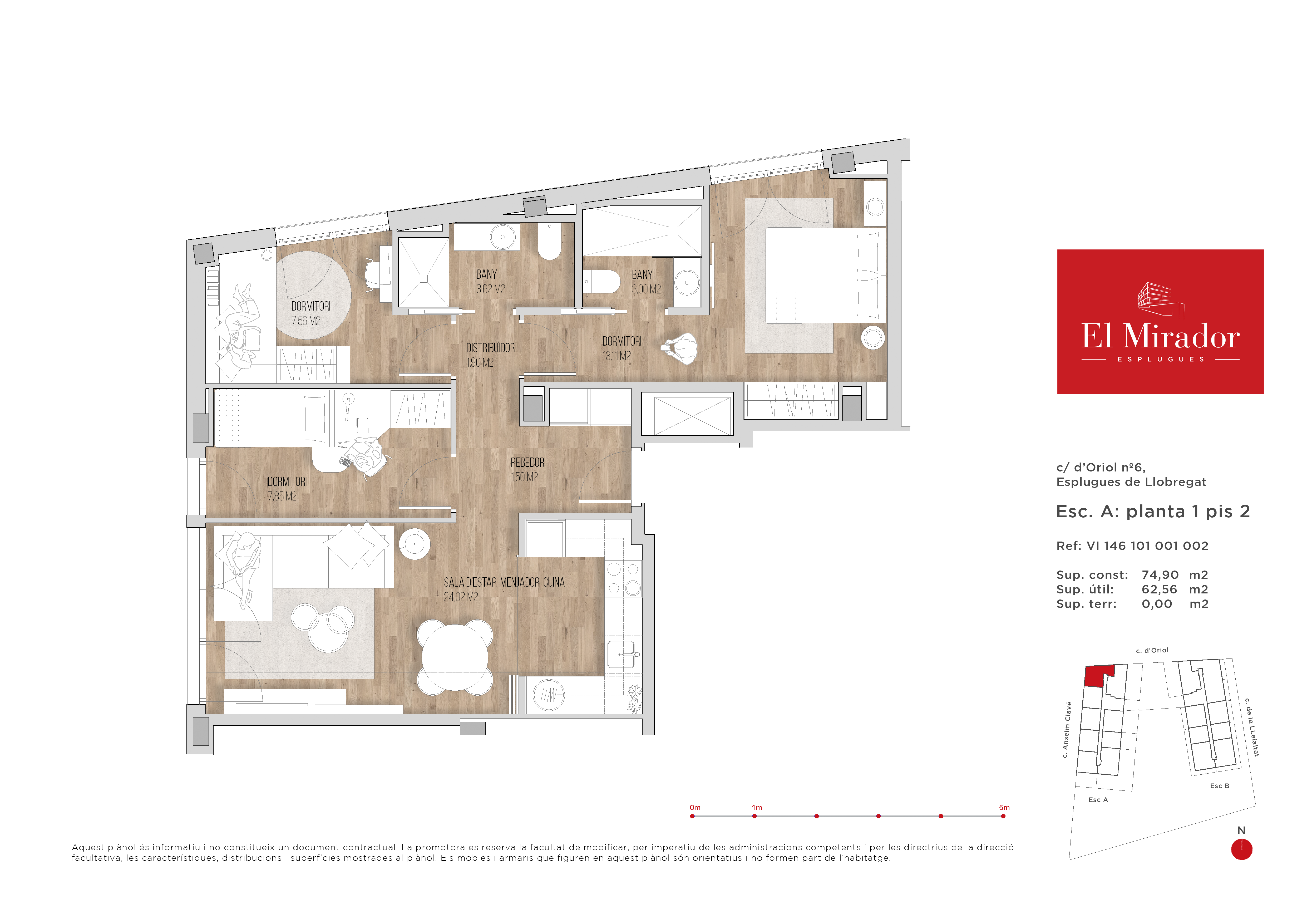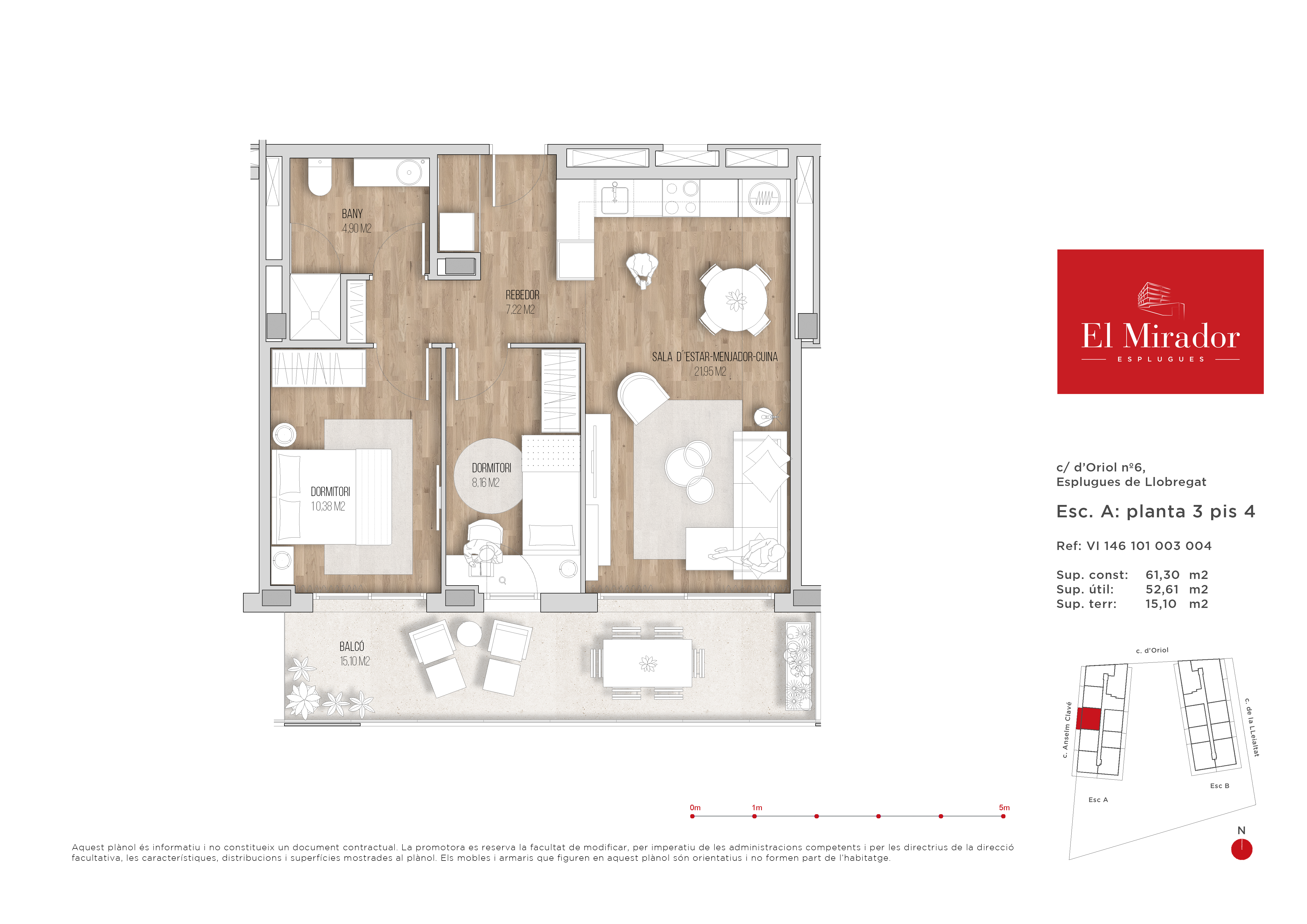 - Pis: 1-5 Util VPC: 52,61 Habitacions + Banys + Balcons: 2 Habitacions + 1 Bany Renda HPO: 526,63 € IBI: 21,92 Residus + Amb: 8,43 Quota Comunitaria: 70,49 Lloguer mensual inicial: 627,47 Serveis Complementaris: 351,12 Total rebut inicial: 978,59 Plànol: Veure plànol
